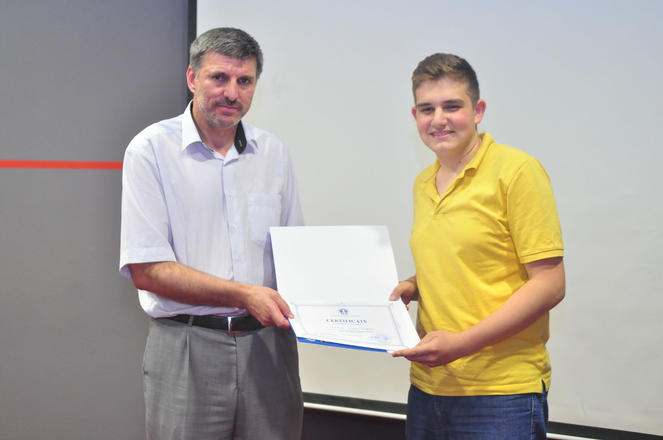 Nakon pune sedmice učenja kako u učionici, tako i izvan nje, prof. dr. Fuat Gürcan, dekan FENS-a, a u funkciji sadašnjeg rektora, gostujućim učesnicima je uručio certificate na ceremoniji kojoj su prisustovali učitelji škole engleskog jezika, osoblje IUS-a i prorektor doc. dr. Muhamed Ali.